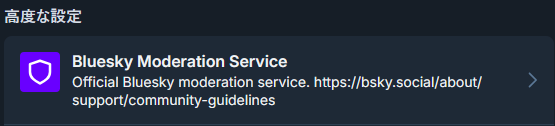さらに追加のフィルターは以下のBluesky Moderation Serviceから変更します。